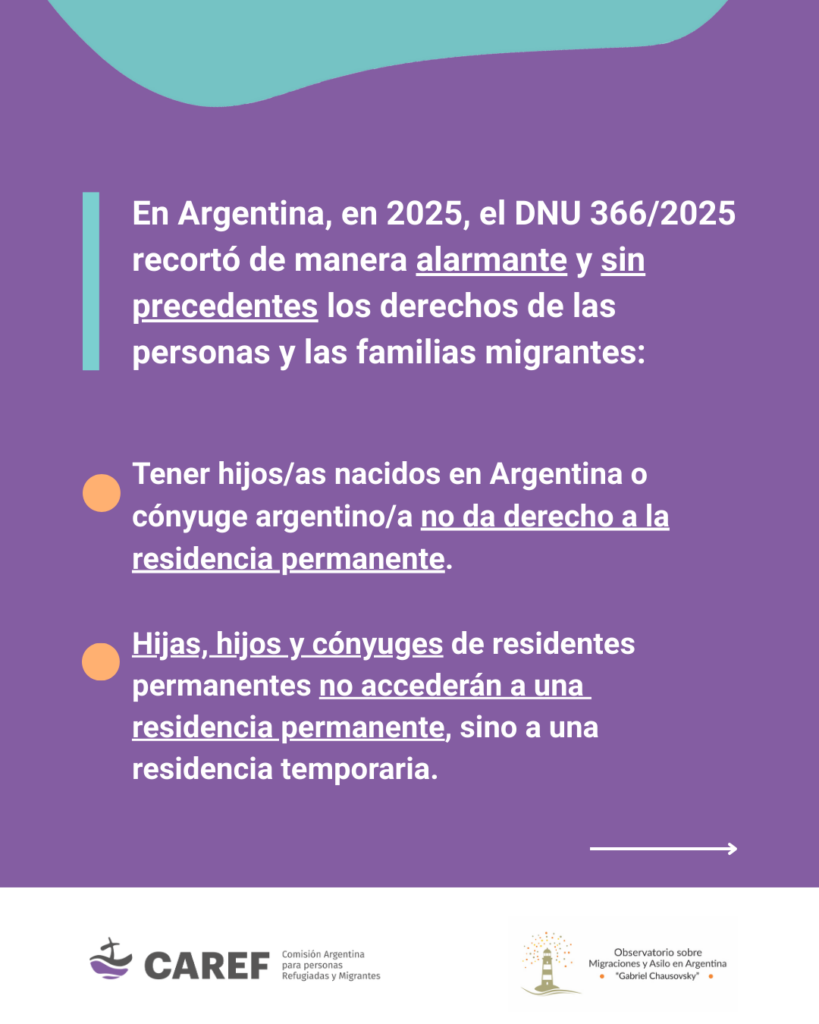 En Argentina, en 2025, un Decreto de Necesidad y Urgencia (366/2025) recortó de manera alarmante y sin precedentes los derechos de las personas y las familias migrantes: