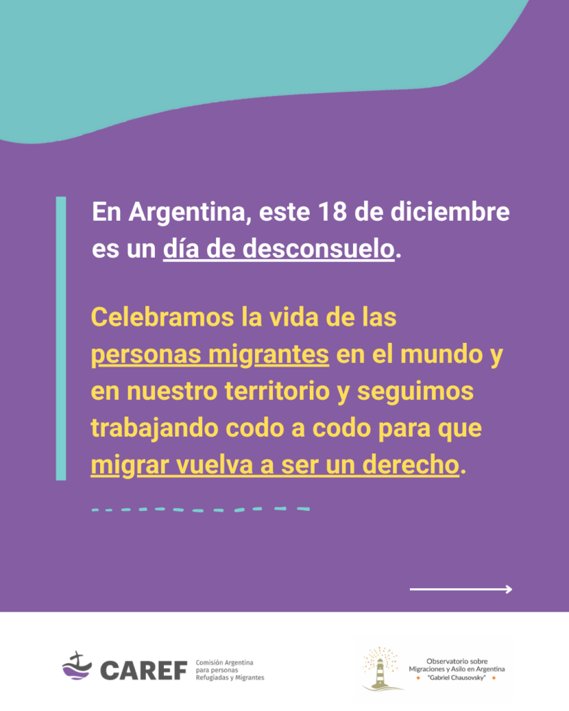 En Argentina, este 18 de diciembre es un día de desconsuelo. Celebramos la vida de las personas migrantes en el mundo y en nuestro territorio y seguimos trabajando codo a codo para que migrar vuelva a ser un derecho.