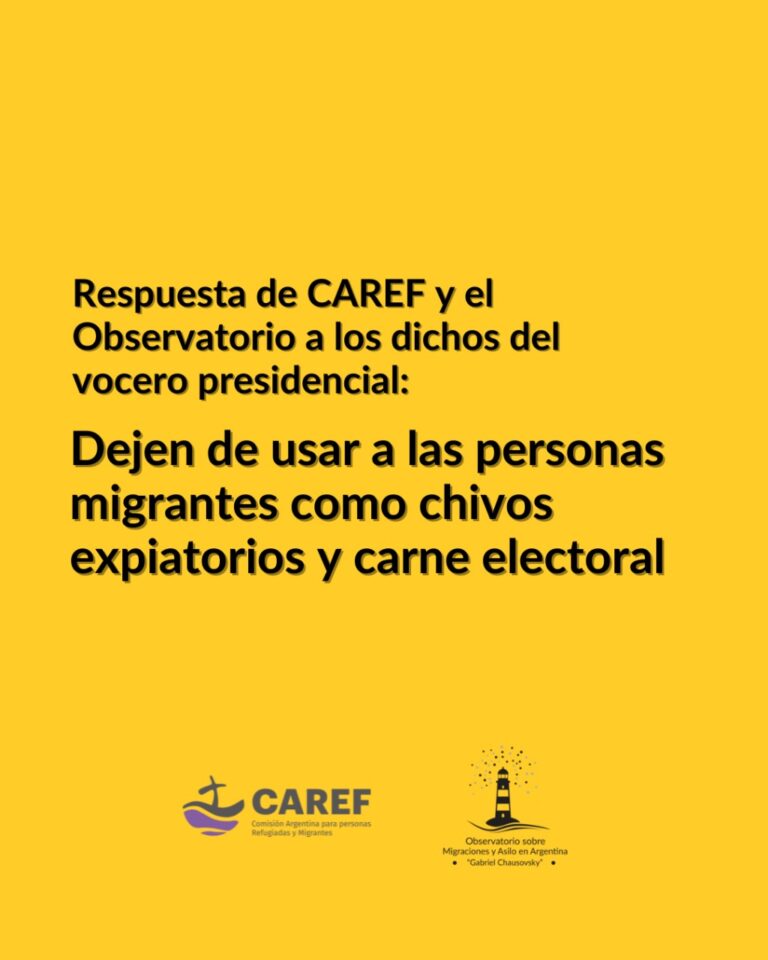 Comunicación Noticias Reforma del sistema de inteligencia: una norma que pone en riesgo garantías constitucionales básicas 12 enero, 2026 Seguir Leyendo + Papeles de Migración 06 9 enero, 2026 Seguir Leyendo + 18 de Diciembre Día Internacional del Migrante y los Derechos Perdidos 18 diciembre, 2025 Seguir Leyendo + Migrantes: chivos expiatorios y campaña electoral 15 mayo, 2025 Seguir Leyendo + El Estado no dio respuestas sobre los problemas que genera el DNU a las personas refugiadas y solicitantes de asilo 3 marzo, 2025 Seguir Leyendo + ‘Tus derechos van con vos’, una campaña sobre los derechos de las personas migrantes 18 diciembre, 2024 Seguir Leyendo + En Territorio. Guía para desarrollar talleres participativos sobre el derecho a migrar 18 diciembre, 2024 Seguir Leyendo + El acceso a la documentación de niñas, niños y adolescentes migrantes 7 noviembre, 2024 Seguir Leyendo + Inició el curso de formación a equipos técnicos de defensorías y organismos de protección de la niñez, “Familias migrantes, refugiadas y solicitantes de asilo. Abordajes interdisciplinarios para la intervención y la protección de derechos” 19 septiembre, 2024 Seguir Leyendo + Más noticias No hay más noticicas que mostrar